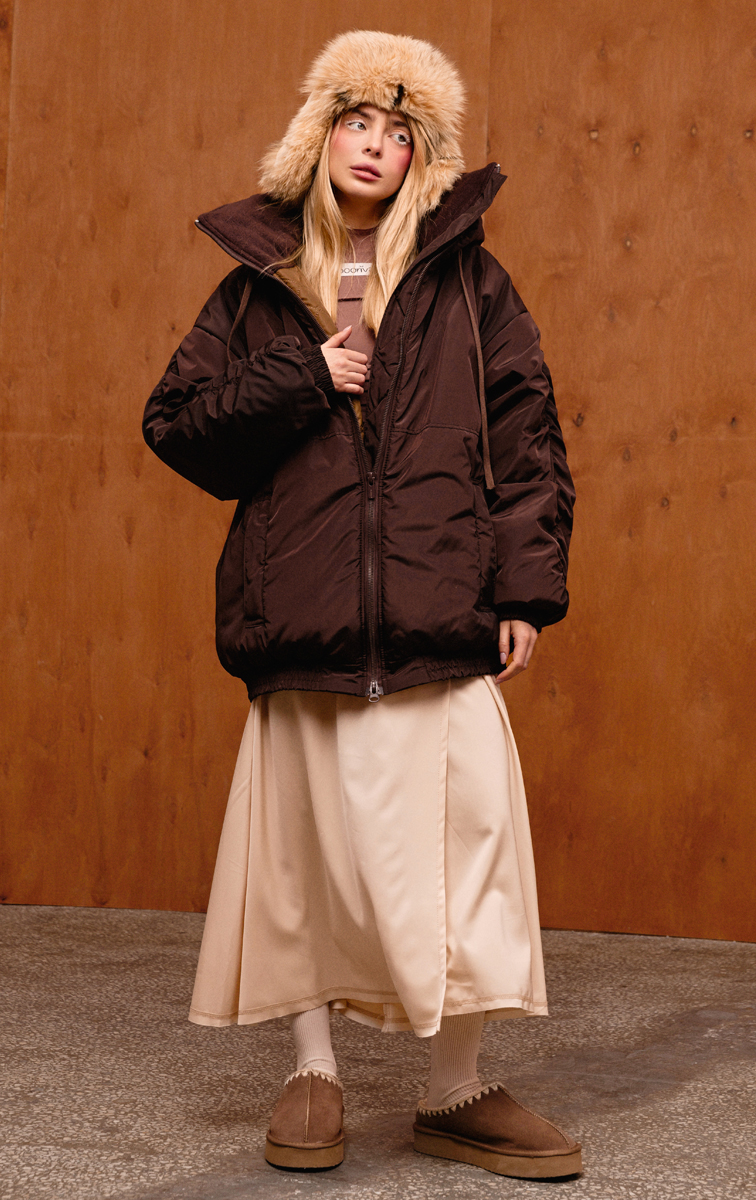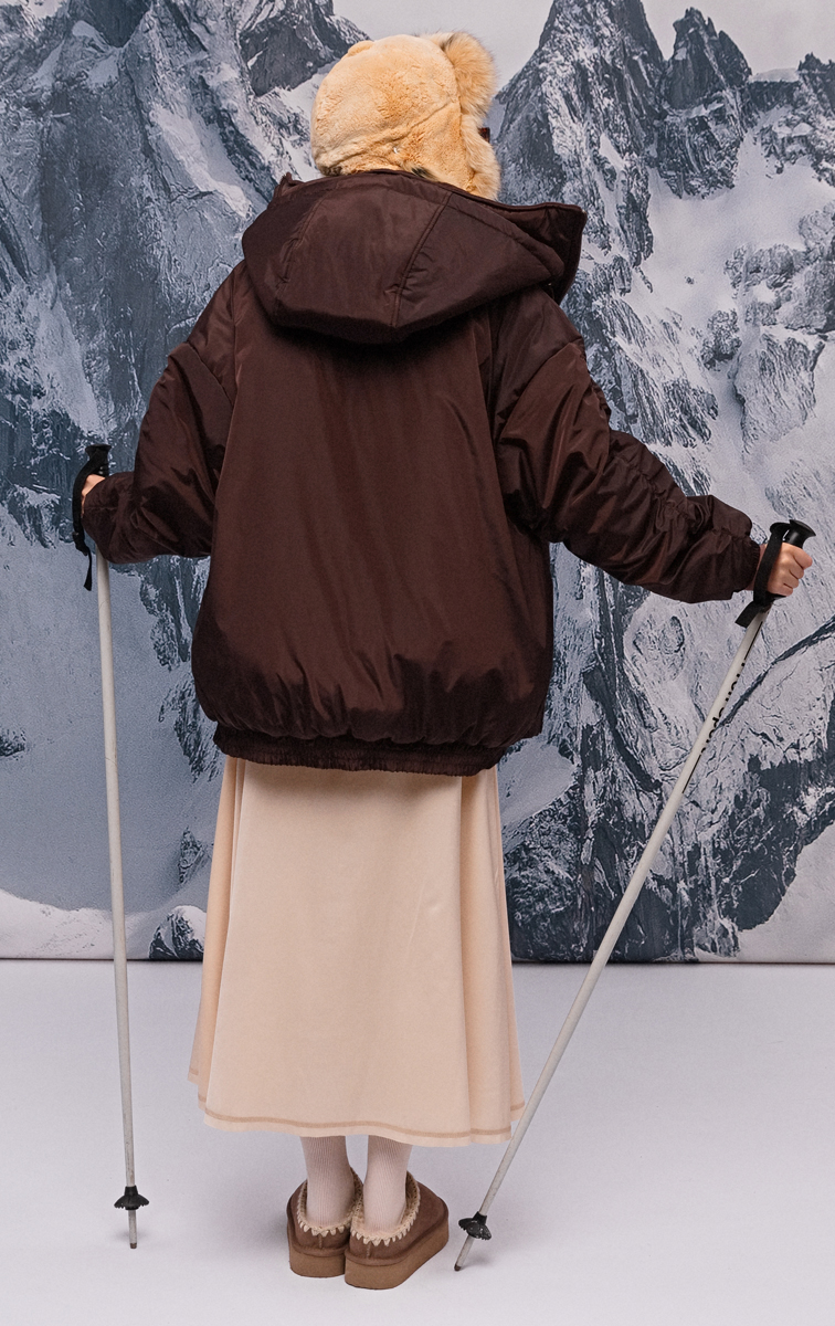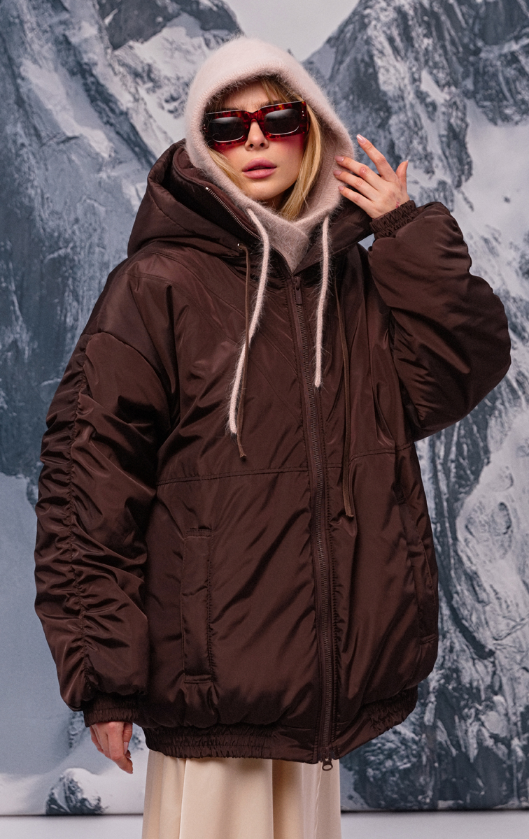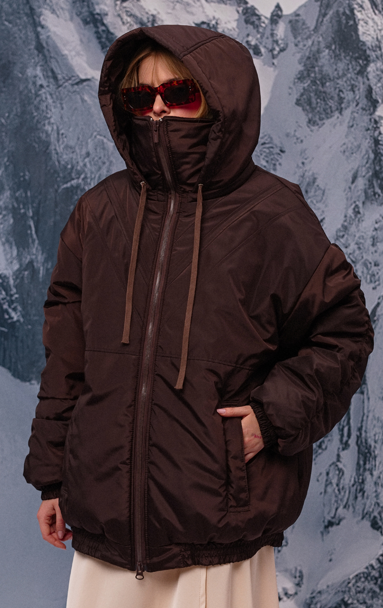 Топовий теплий бомбер-олімпійка насиченого шоколадного кольору з високим коміром та знімним капюшоном. Утеплювач слімтекс і тканинна мембрана, яка зберігає тепло і одночасно забезпечує гарний теплообмін, захищають від продування та точно не дадуть тобі замерзнути навіть при -25 градусах морозу. Манжети на резинці, великі кишені та V-подібний лінії виглядають дуже стильно.