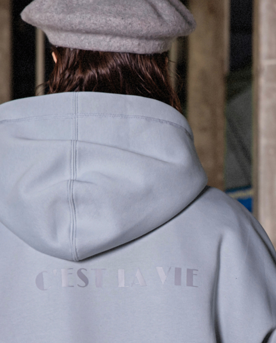 Утеплений oversize худі в ніжному оливковому кольорі з великою кишенею кенгуру спереду і накладною кишенею позаду. Великий напис на спинці і мінімалістичний принт записки з Парижу створюють яскраві акценти на базовому худі. Модель також в наявності в кольорі шоколад.