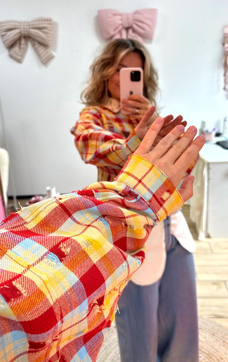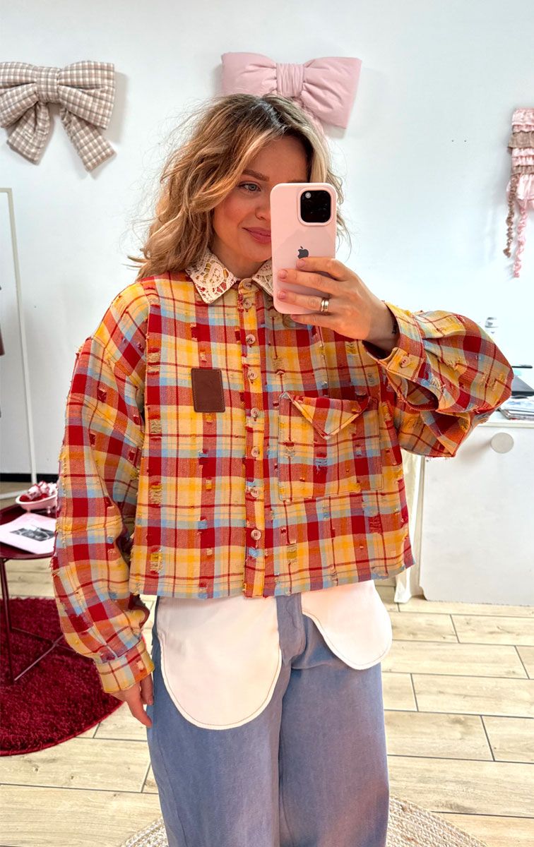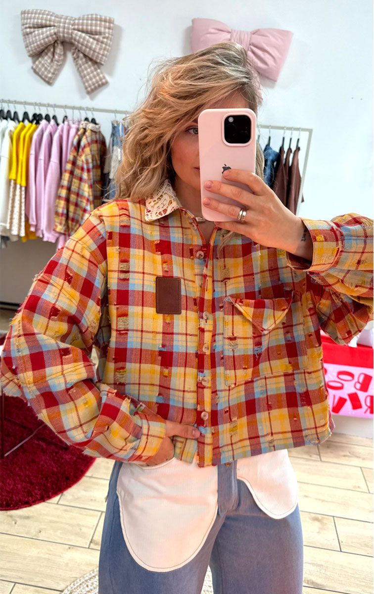 Сорочка з рваним ефектом червона